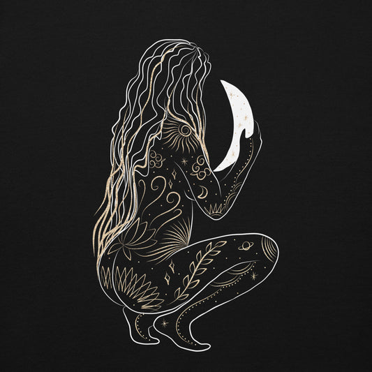 Mystical Woman Holding Crescent Moon Hoodie